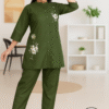 - Elegant olive green Co-ord set with delicate white & Golden Beads Embroidery